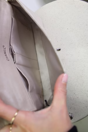 The Chanel Chocolate Bar bag is a very playful purse that, no shock, looks a bit like a chocolate bar! This beauty is giving cool girl vibes because of its stunning Travel Line canvas and the matte silver-toned hardware. The bag has a shoulder strap and closes with the CC closure lock. The inside has one main compartment and two smaller side pockets. We are in love!