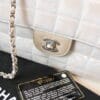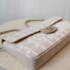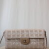 The Chanel Chocolate Bar bag is a very playful purse that, no shock, looks a bit like a chocolate bar! This beauty is giving cool girl vibes because of its stunning Travel Line canvas and the matte silver-toned hardware. The bag has a shoulder strap and closes with the CC closure lock. The inside has one main compartment and two smaller side pockets. We are in love!
