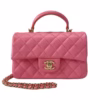 How cute and gorgeous is this Chanel Flap Bag mini flap top handle in this stunning pink color?! Perfect for Spring and Summer, we are in love! This pre-owned beauty is made from lambskin leather and a leather woven chain shoulder strap, front flap with the well-known double C twist lock closure. The hardware is champagne-toned, so it goes perfectly with silver and gold accessories. The exterior of this bag has a slip pocket on the back and the interior has also a few slip pockets. We totally love this vintage treasure!