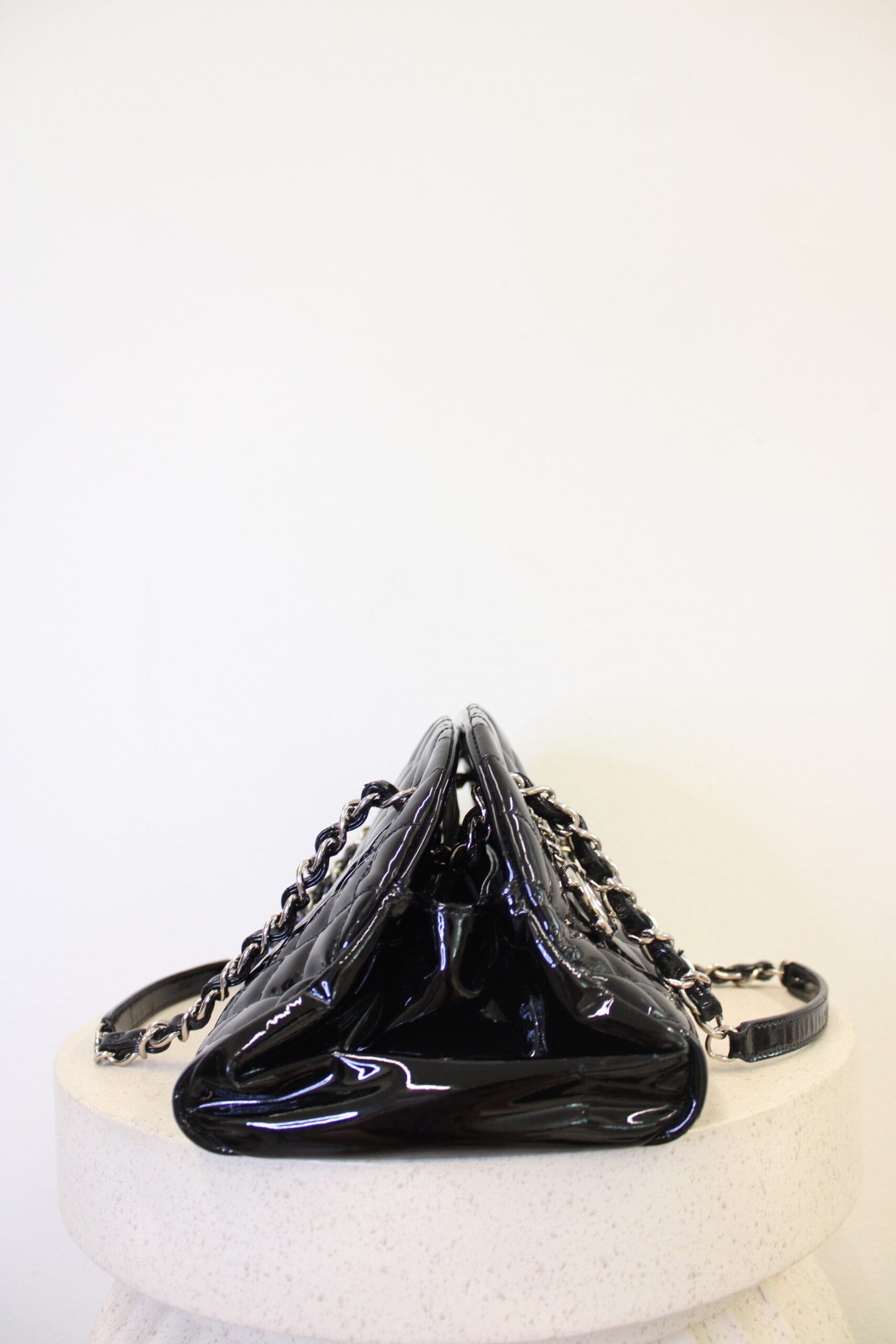 This Chanel Patent Shoulder Bag is everything you need! This eye-catching beauty is giving cool girl vibes because of its stunning patent leather body and the silver-toned hardware. The bag has a two patent woven shoulder straps that fit perfectly over your arm. The inside has three compartments that are separated by one zipper. The CC logo is casually hanging on the side. We are in love!