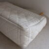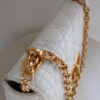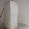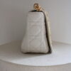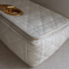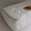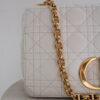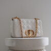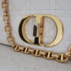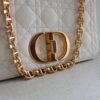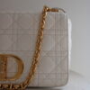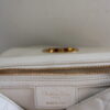 The size of this beauty is compact and suitable for carrying essentials while maintaining a sleek and chic appearance. The bag features a structured silhouette with off-white leather design, a flap closure, a signature Dior logo plaque and comes with adjustable shoulder strap. The crossbody bag is crafted from high-quality materials and made of gold-toned hardware.