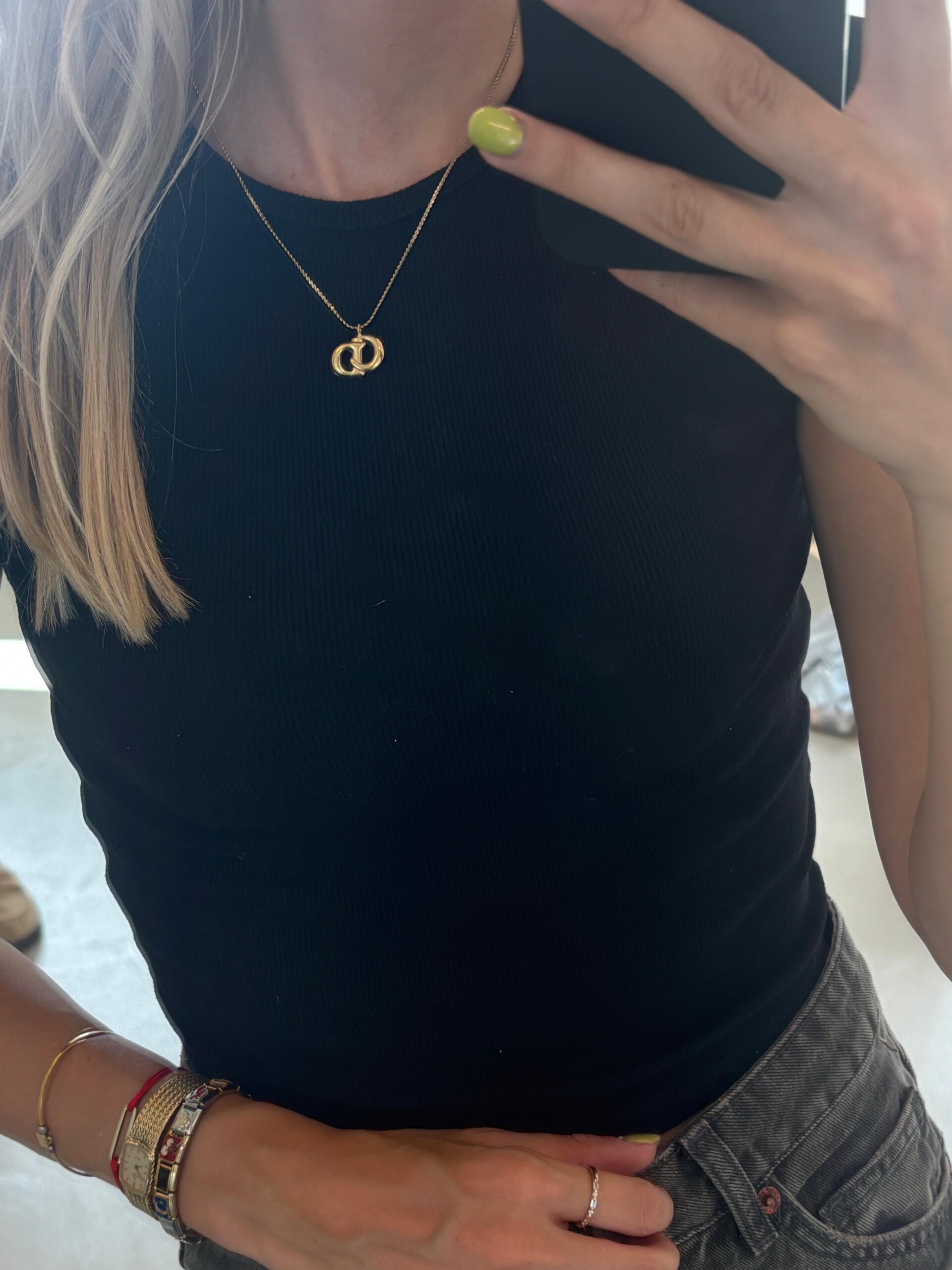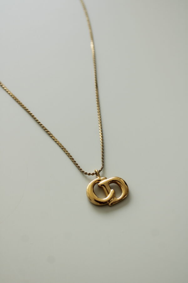 This stunning Dior Necklace is a piece of jewelry from the luxury fashion brand Christian Dior. It is a gold-toned necklace with a larger ‘CD’ pendant in bold. So cool! The chain is adjustable and the necklace is small to medium-length. It’s amazing, right?