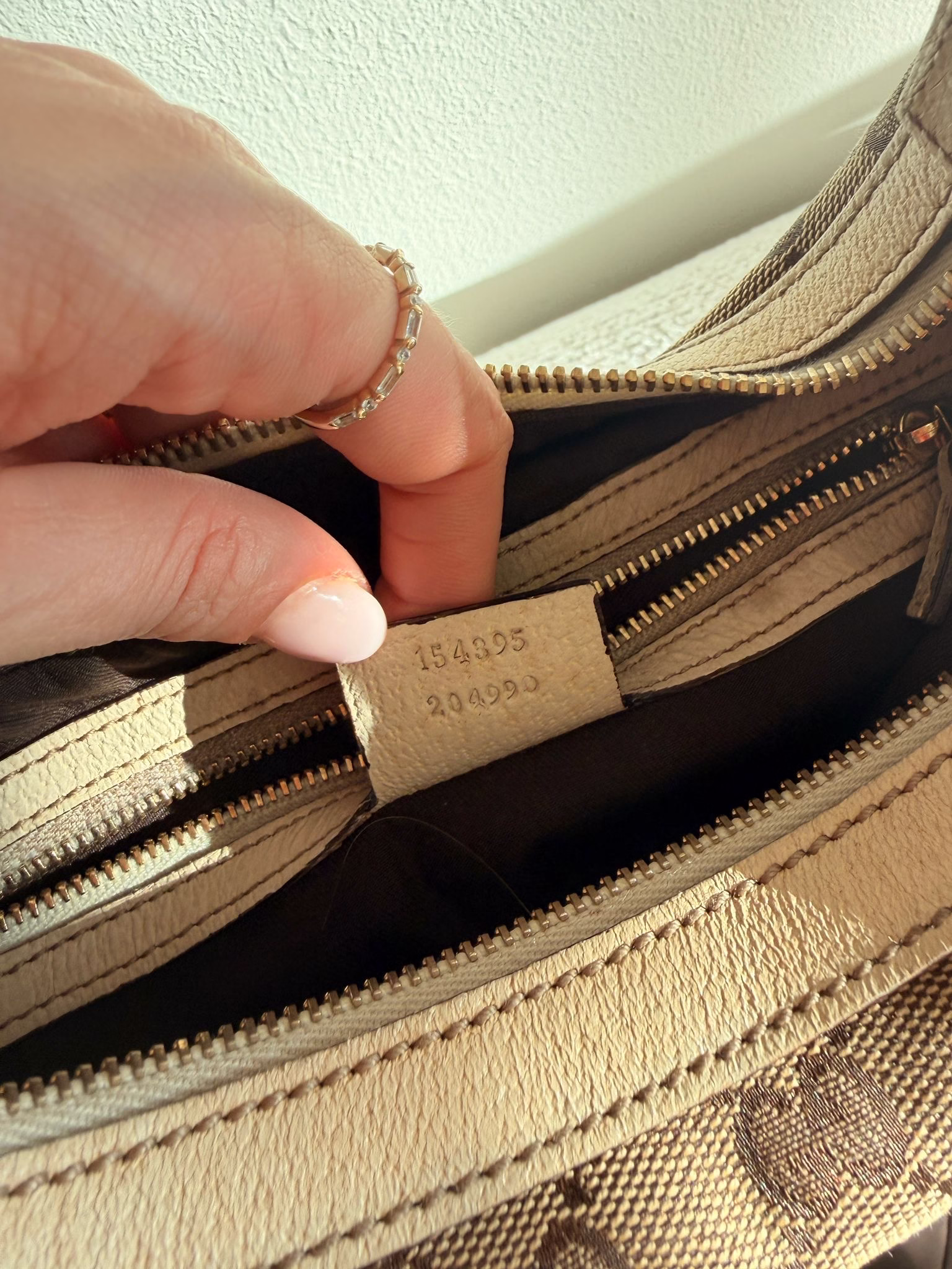 The Gucci Canvas Hobo Bag Charmy is the perfect bag. It’s the IT bag of the moment and we totally get why. The bag has a beige canvas color and dark brown leather details, the perfect fall bag. On the canvas you’ll find the iconic GG canvas, which makes the bag very chic yet casual. The hardware is champagne-toned and it closes with a zipper. It’s the coolest bag for every day use! We love it!