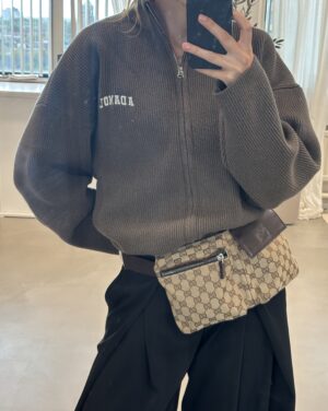 How cool is this Gucci Belt Bag? It was spotted on Kim Kardashian and has this cool vintage vibe and will look stunning on every outfit. The bag has a beige canvas and brown color canvas strap. This bum bag has two front pockets that closes with a zipper. The stap is adjustable, so you can wear it as a perfect fitted belt bag on your waist or across your body. On the canvas you’ll find the iconic GG canvas, which makes the bag very chic yet casual. It’s the perfect bag for every day use! We love it!