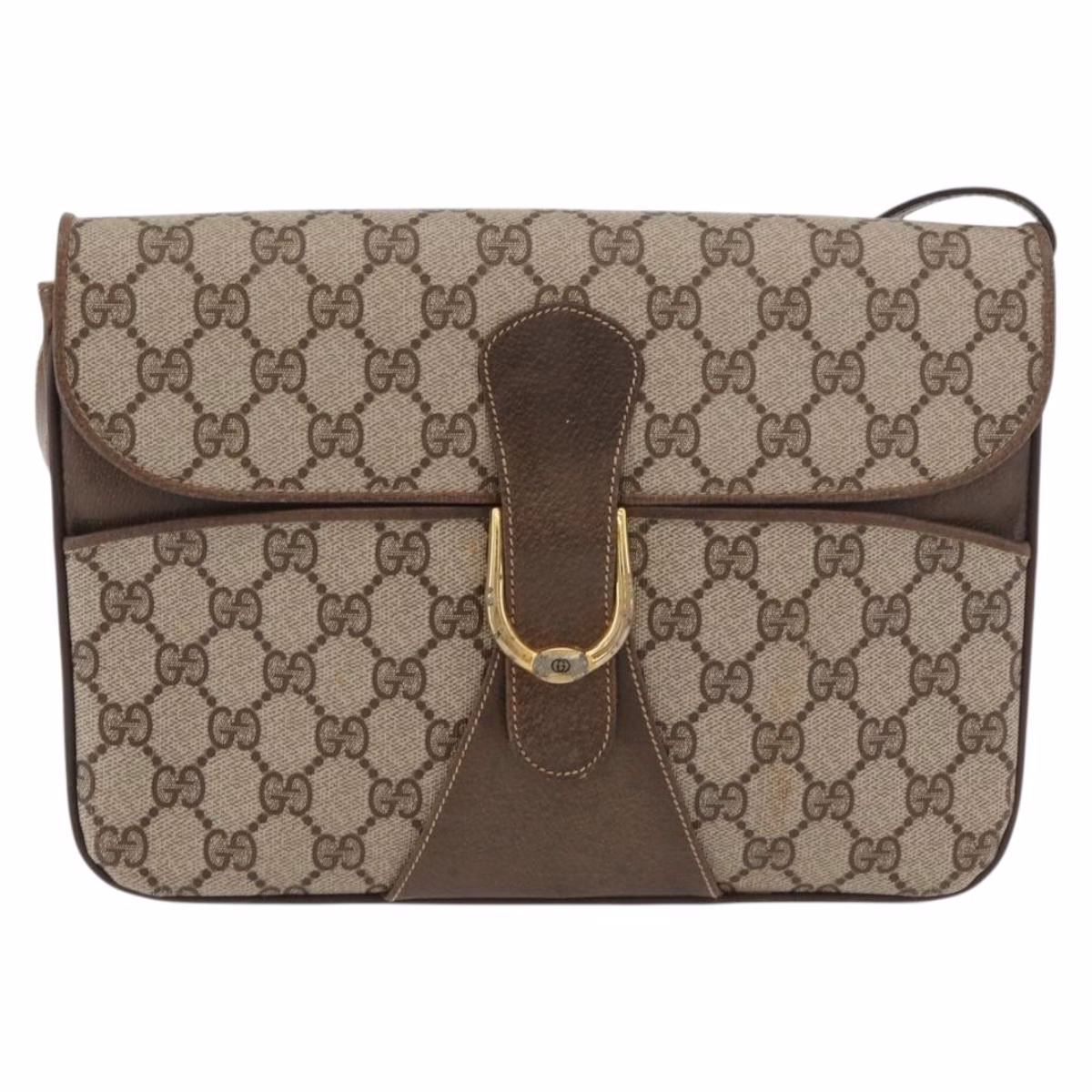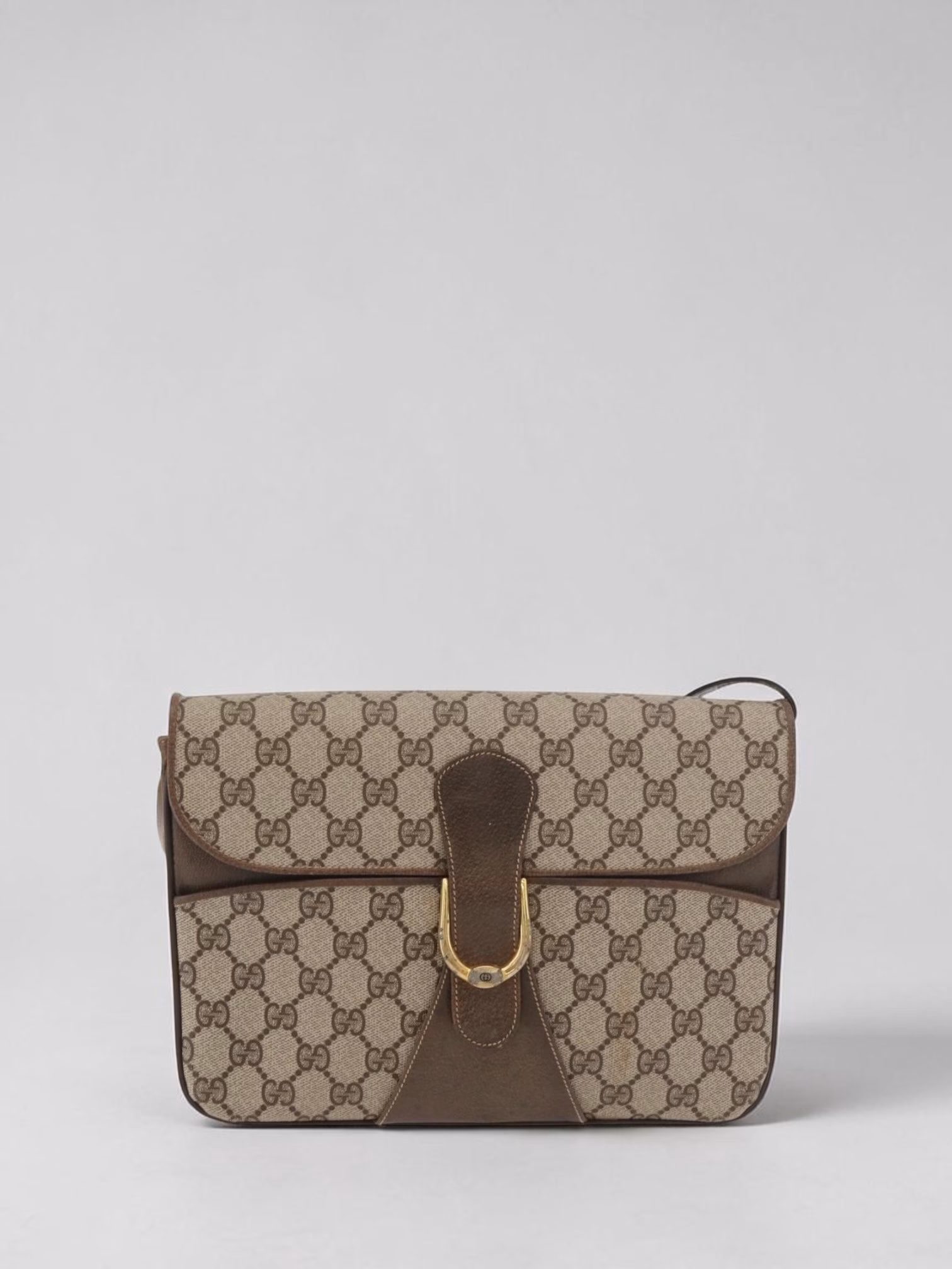The cute Gucci GG Crossbody Bag is the perfect every day bag. This beauty features the GG-logo all over the beige canvas. The details of this bag are made of brown leather. The bag has flap with a stud closure and gold-colored details. The strap is not adjustable. The inside has one main compartment. Take this vintage piece with you on a day or night out and upgrade your look!