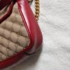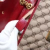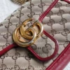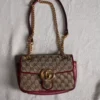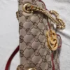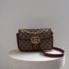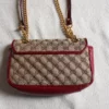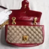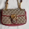 The Gucci Marmont Mini in GG Canvas and red leather is one of our favorite pieces of the Gucci house. The bag is known for its luxurious design and signature interlocking GG logo. You can wear it crossbody or as a shoulder piece. The hardware is gold toned. The bag is also known as the GG Marmont matelassé Mini bag, we think the size is perfect for all your essentials (it’s not really ‘mini’).