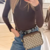 Cool eye-catcher alert! The Gucci PVC Crossbody bag is the perfect every day bag. It’s the such a cool piece that will elevate any look. The bag has a beige PVC canvas and dark brown leather details and it has this cute shaped body. On the canvas you’ll find the iconic GG canvas, which makes the bag very chic yet casual. The hardware is gold toned. It has a non-adjustable strap. It’s the perfect bag for every day use! We love it!
