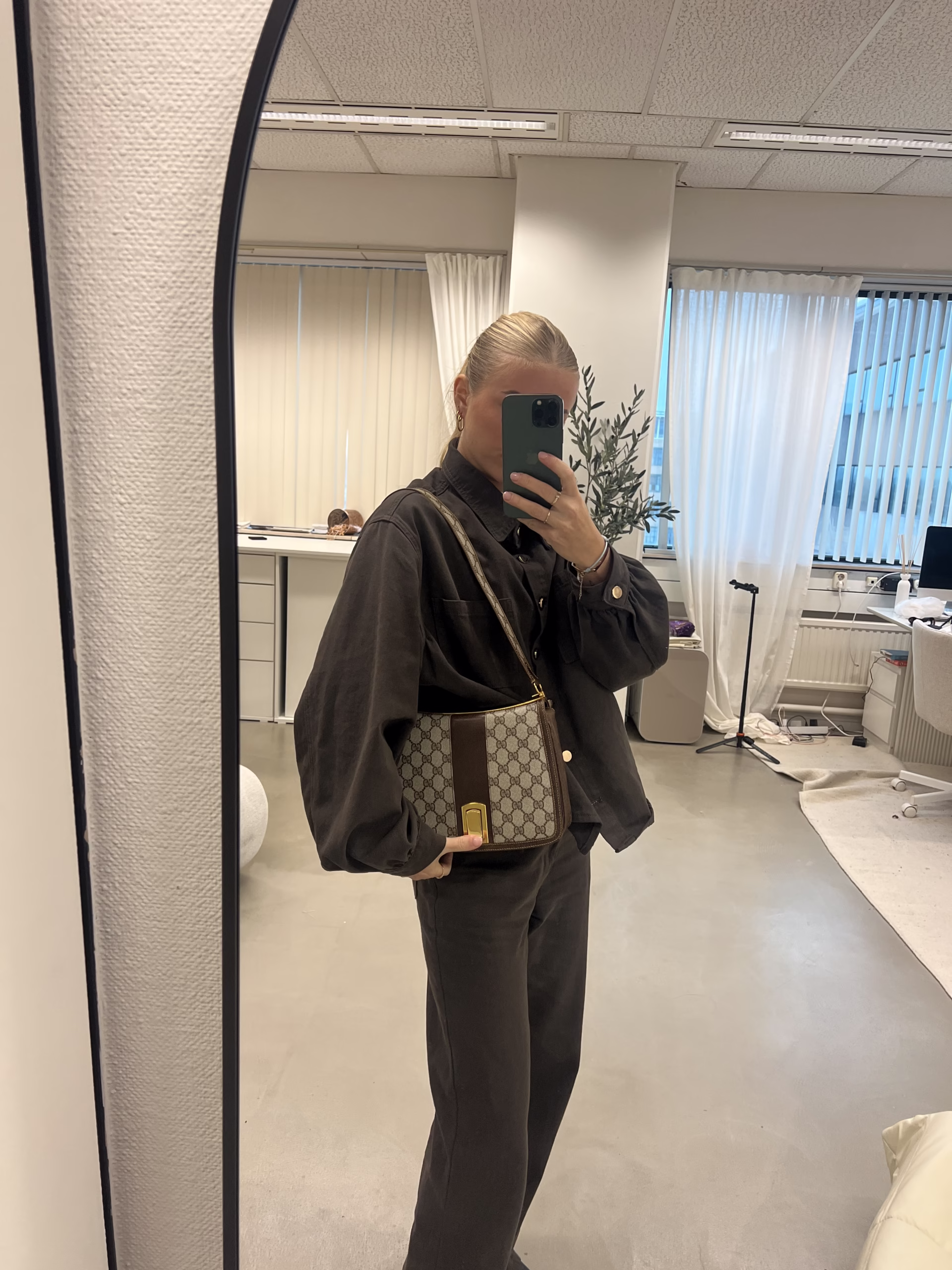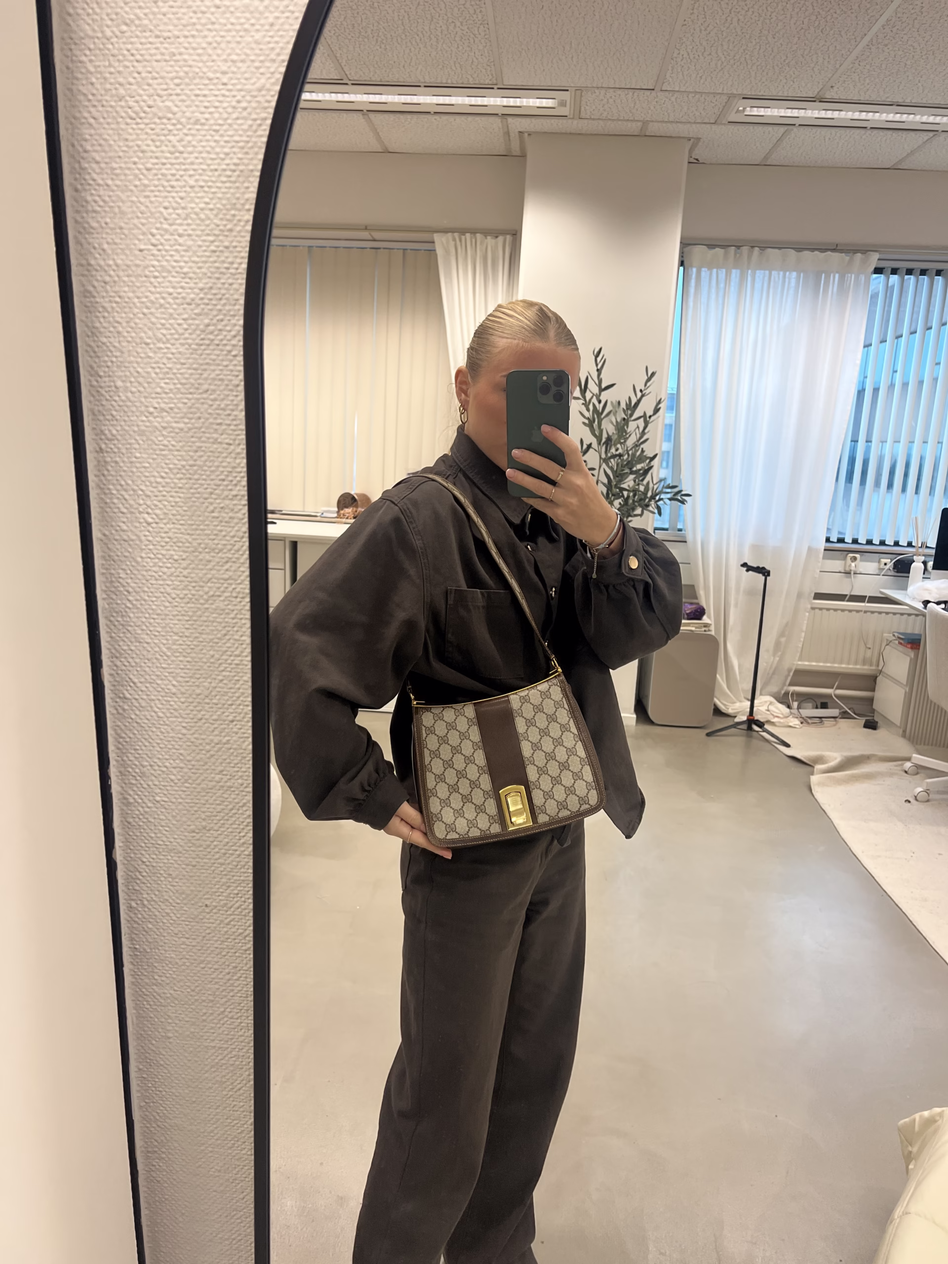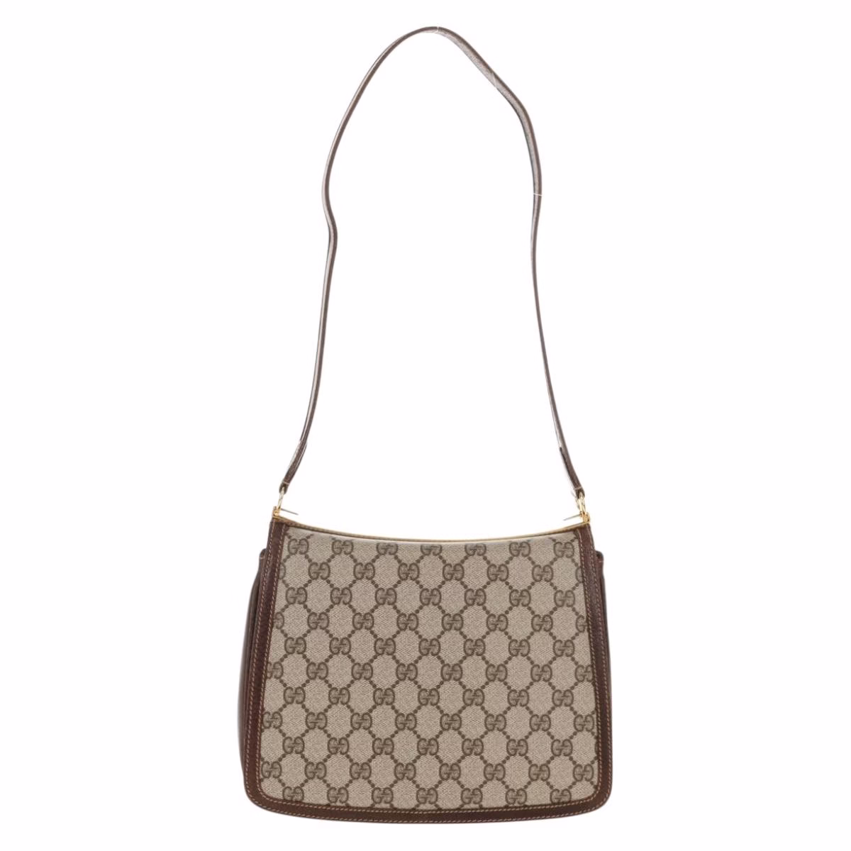 The coolest Gucci Shoulder Bag has just arrived… This beauty features the GG-logo all over the beige canvas and has shiny gold details. The details of this bag are made of brown leather. The bag has a flap closure and gold colored details. The strap is not adjustable. The inside has one main compartment, one front pocket and one side pocket. Take this vintage piece with you on a day or night out and upgrade your look!