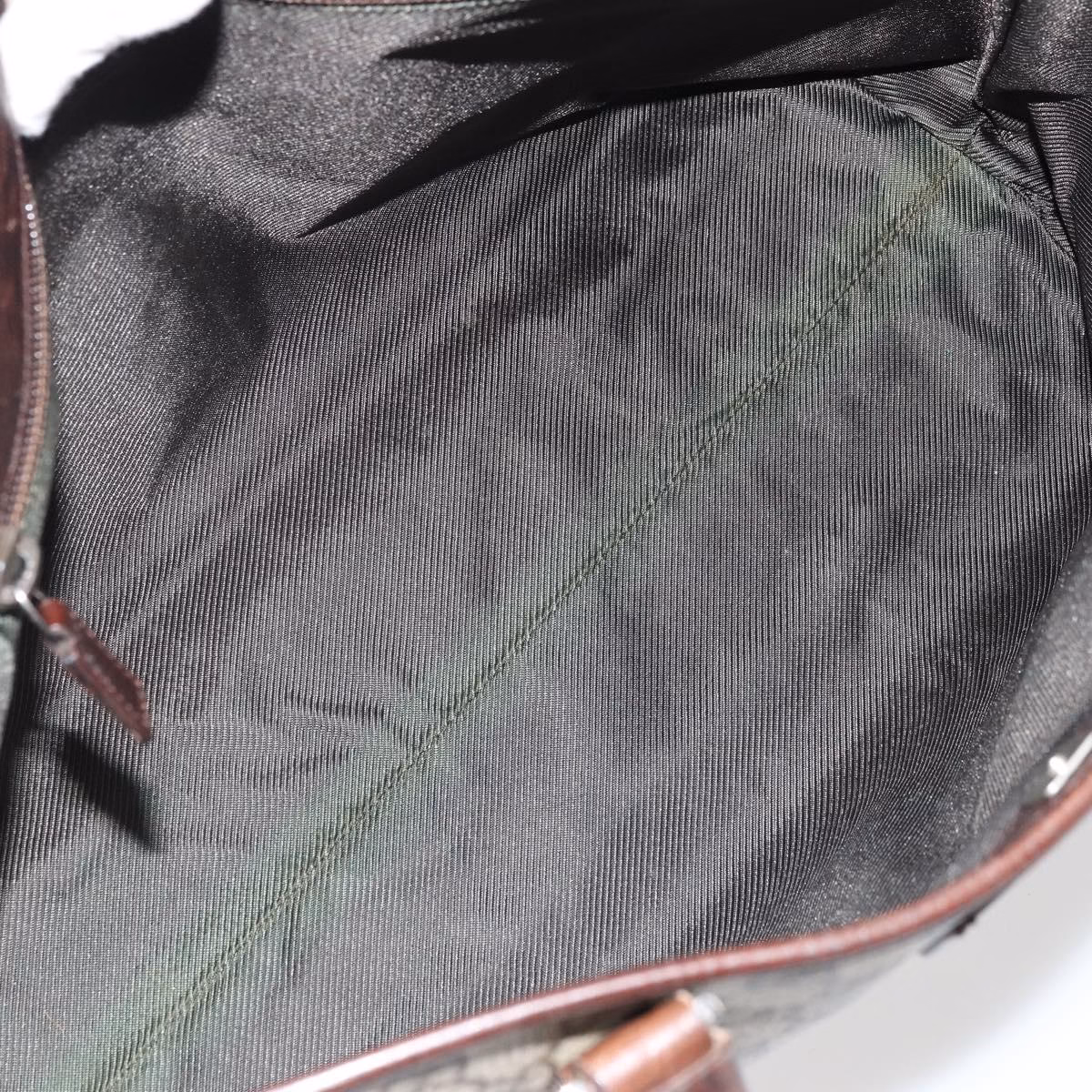 7.7/10 – Good condition. Some very small signs on the leather parts and corners. Small spot on the canvas. Inside is clean.