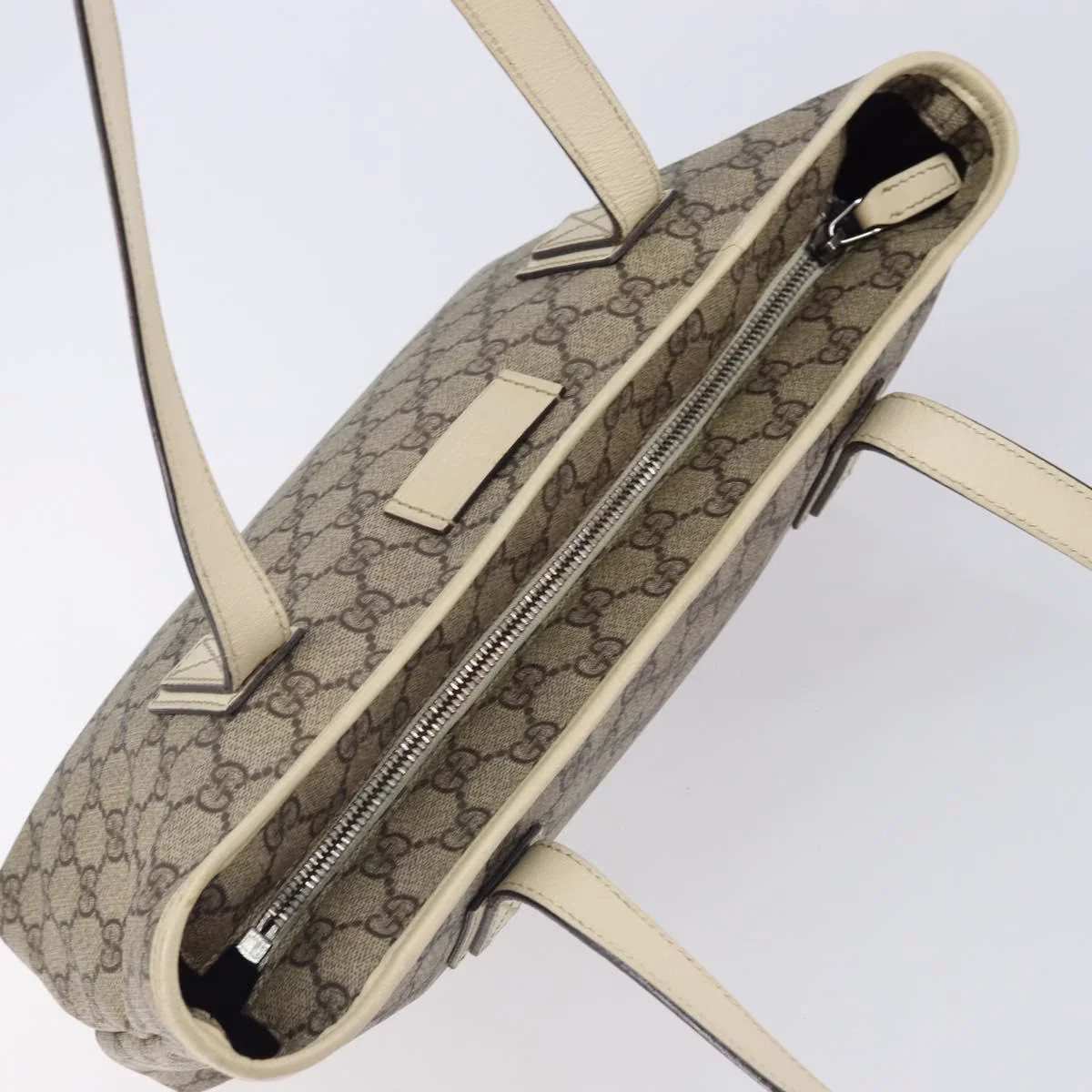 The Gucci PVC Tote Bag is the perfect every day bag. It will fit all your daily essentials and upgrades every outfit. This beauty is crafted from beige PVC with the well-known GG logo all over. The bag has white leather details and two top handles and closes with a zipper. The inside has one main compartment and a smaller pocket. The perfect every day bag!