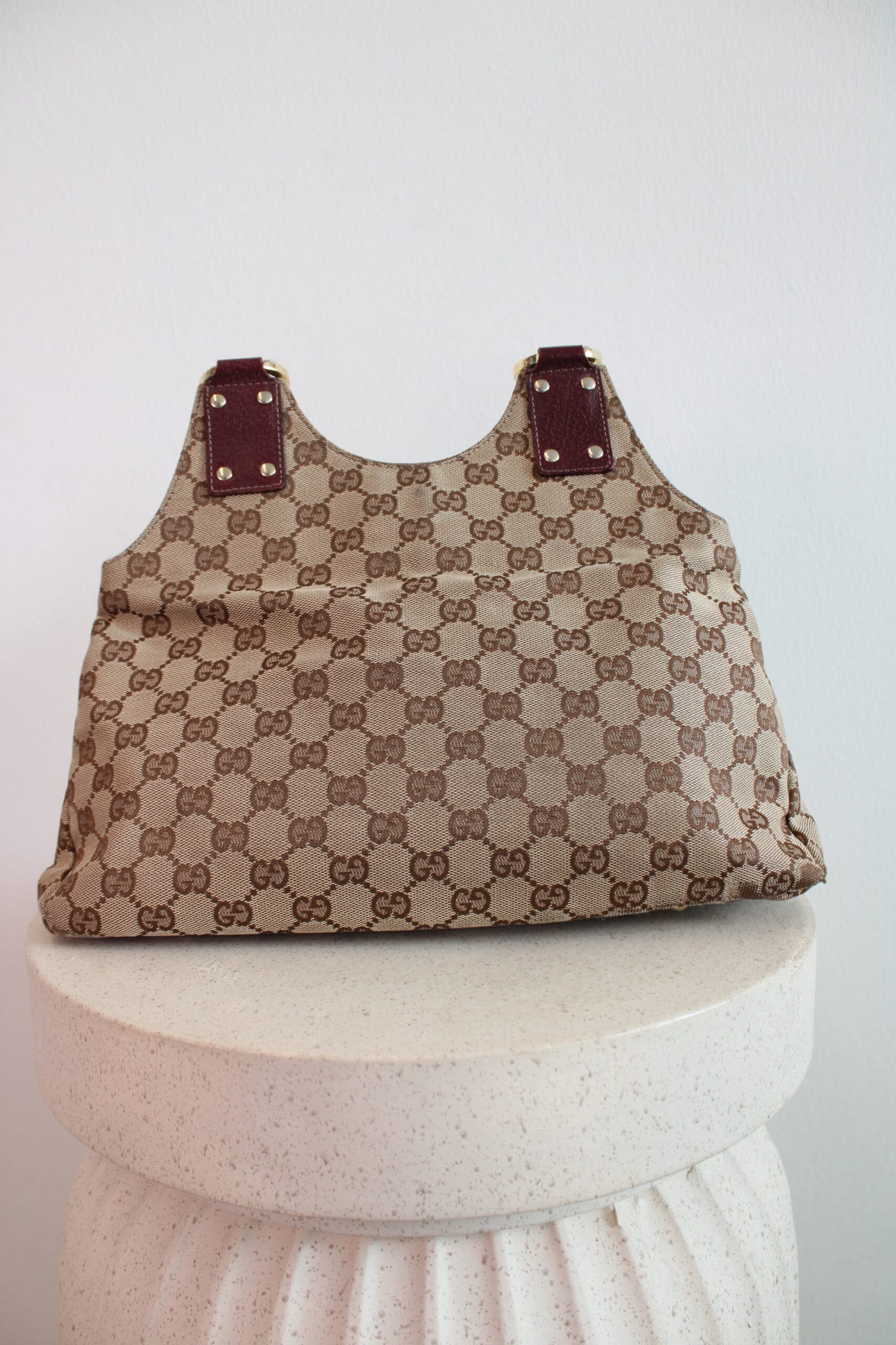 Eye-catcher alert! The Gucci Shoulder Bag is the perfect every day bag. It’s the IT bag of the moment and we totally get why. The bag has a beige canvas color and bordeaux red leather details. On the canvas you’ll find the iconic GG canvas, which makes the bag very chic yet casual. The hardware is gold toned. It’s the perfect bag for every day use! We love it!