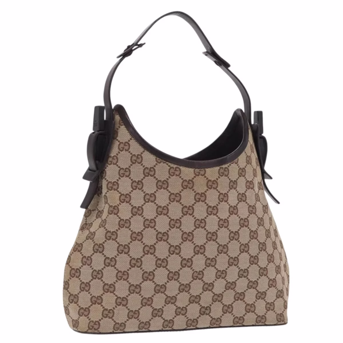 Eye-catcher alert! The Gucci Shoulder Bag is the perfect every day bag. It’s the IT bag of the moment and we totally get why. The bag has a beige canvas color and cool dark brown leather details, so cool. On the canvas you’ll find the iconic GG canvas, which makes the bag very chic yet casual. The hardware is silver toned. It’s the perfect bag for every day use! We love it!
