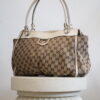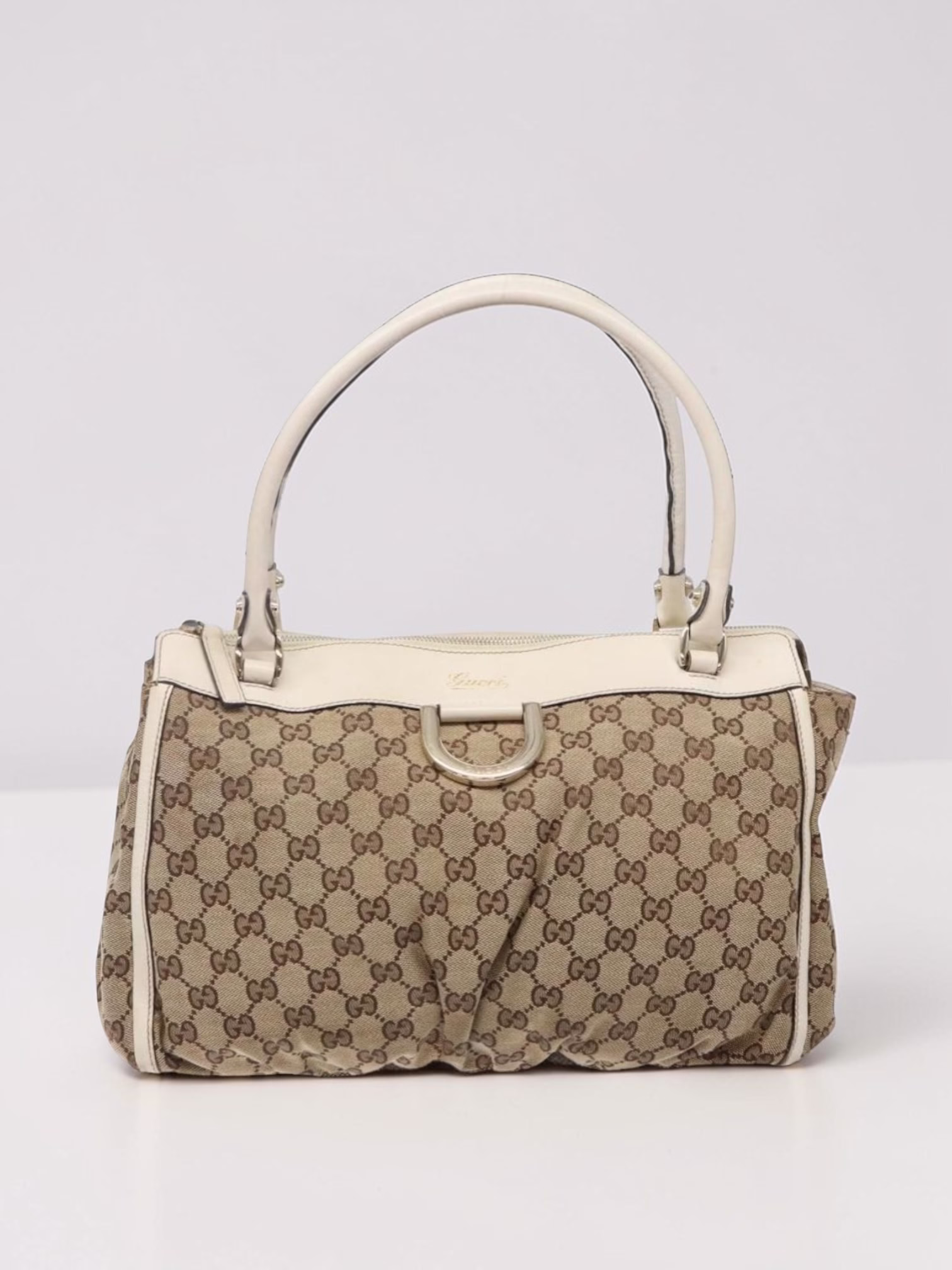 The Gucci Sukey Tote in beige is the perfect every day bag. It’s the IT bag of the moment and we totally get why. The bag has a beige canvas color and white leather details. On the canvas you’ll find the iconic GG canvas, which makes the bag very chic yet casual. The hardware is champagne-toned and the bag closes with a zipper. It’s the perfect bag for every day use! We love it!