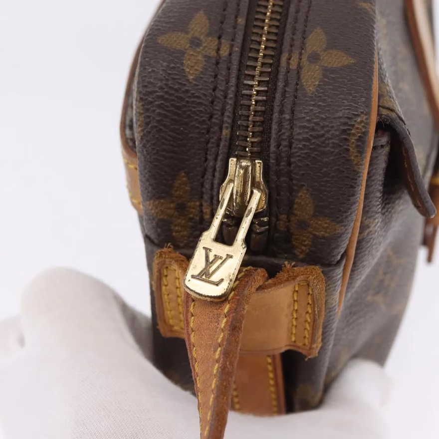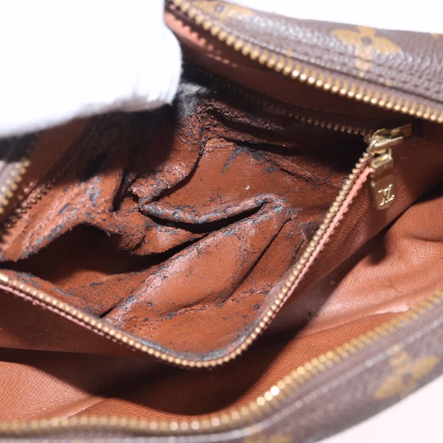 7.7/10 – The condition is good. Some small signs on the leather parts. Canvas looks good. Inside zipper pocket is sticky. Main compartment can be used.
