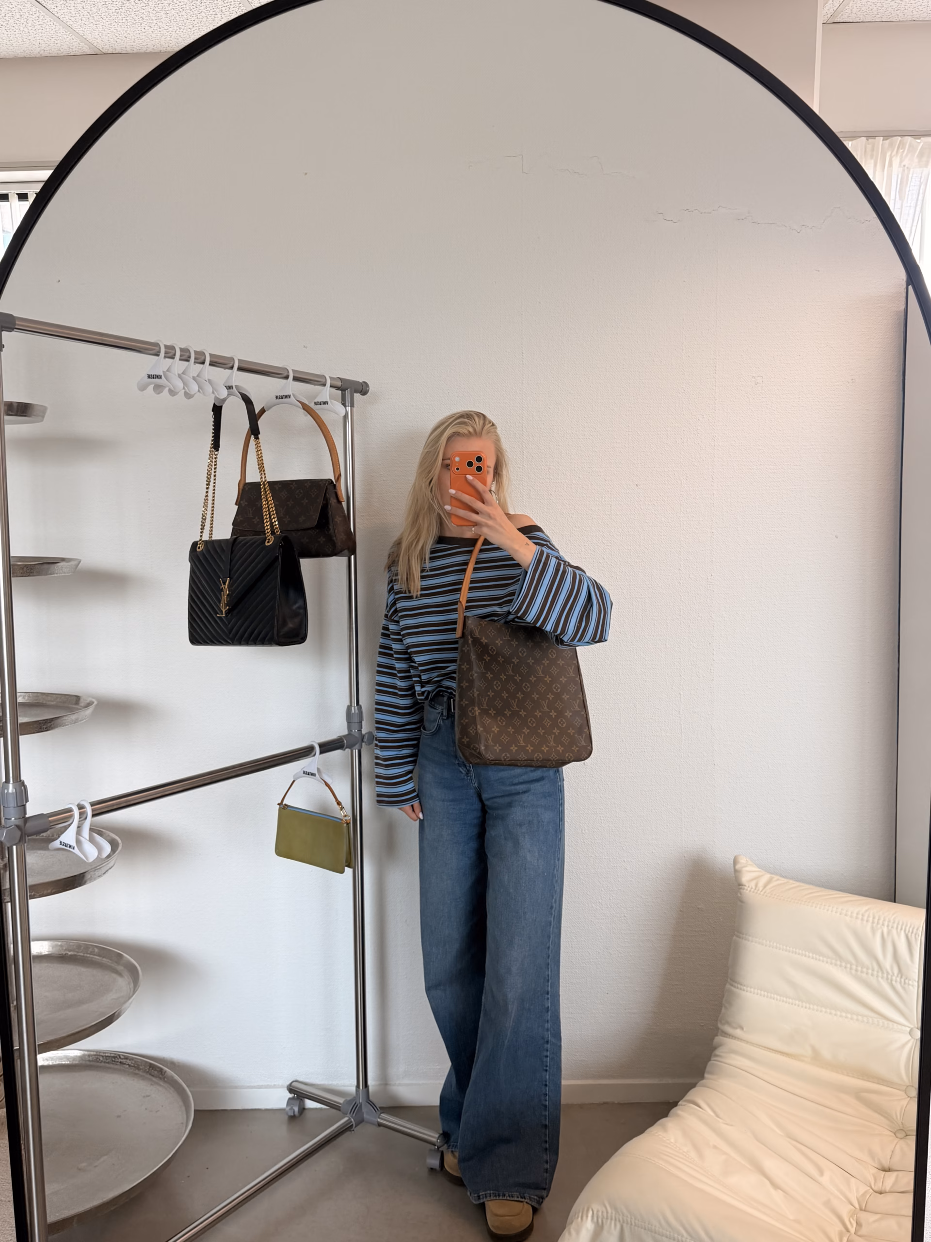 The Louis Vuitton Looping GM is a classic and timeless shoulder bag that has been a popular choice among fashion lovers for many years. It features a simple and elegant design, with a curved shape that sits comfortably on the shoulder, making it perfect for everyday use. The bag is made of Louis Vuitton’s signature Monogram Canvas, which is known for its durability and resistance to wear and tear. It also features a vachetta leather trim and a detachable shoulder strap, which allows it to be worn on the shoulder.