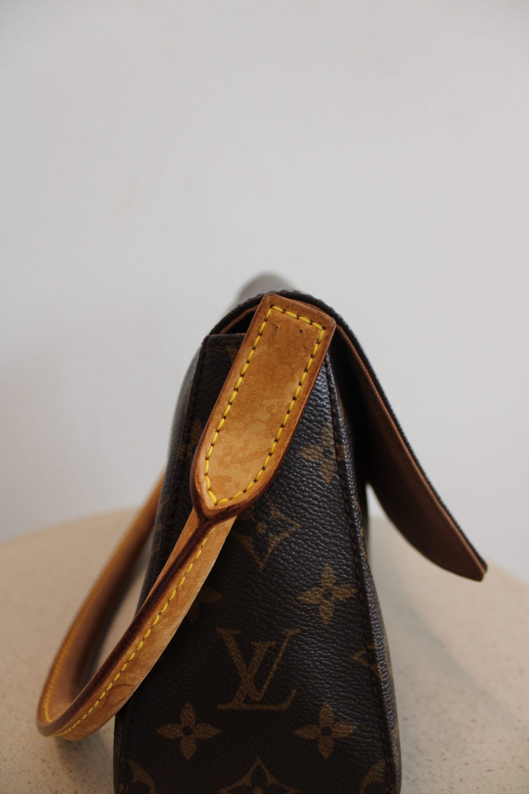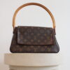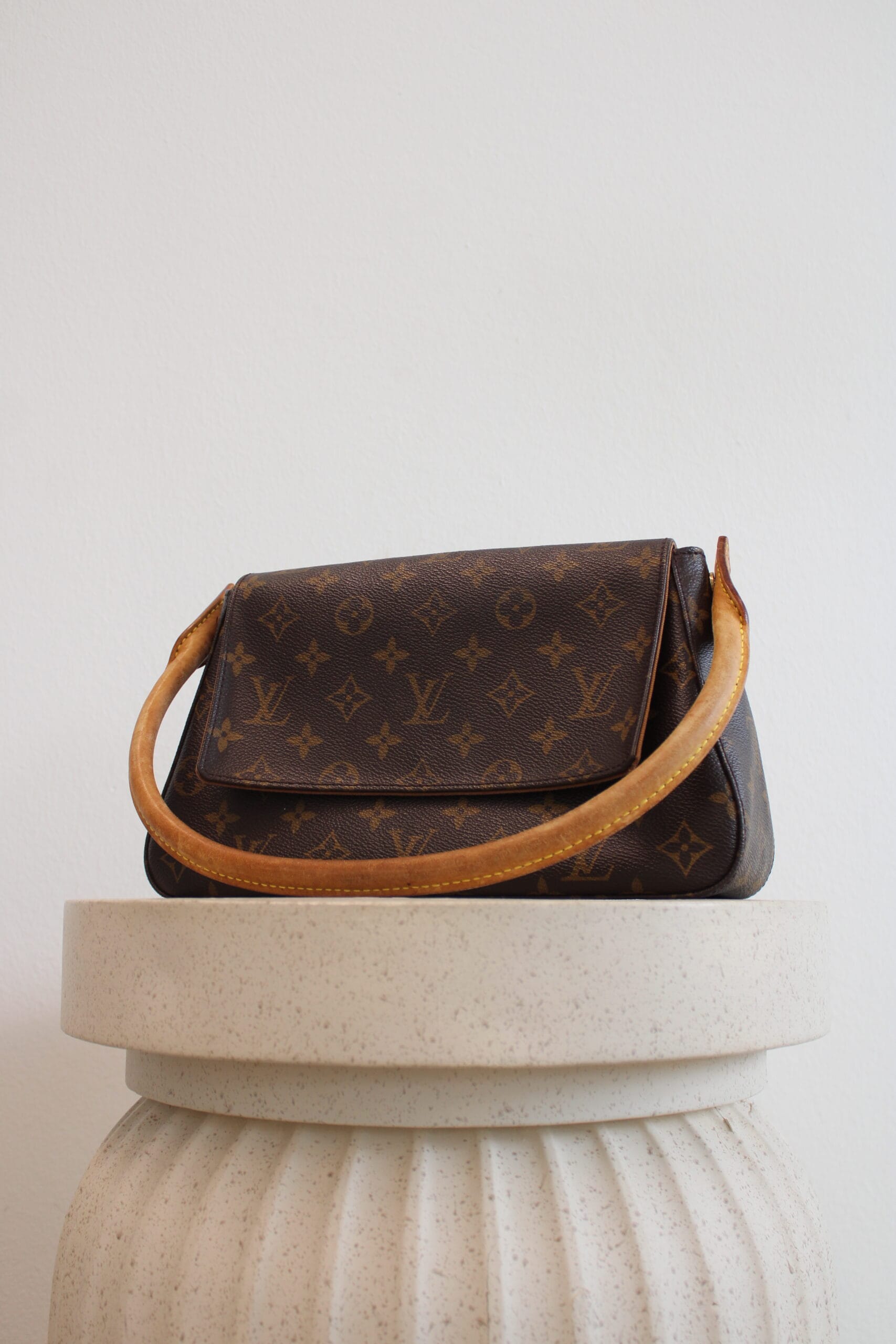 The Looping PM is a compact shoulder bag that features a unique curved shape. It is crafted from Louis Vuitton’s signature Monogram canvas. The bag is accented with natural cowhide leather trim, which adds a touch of luxury to its design. The Looping PM has a single shoulder strap that allows for easy and comfortable carrying.