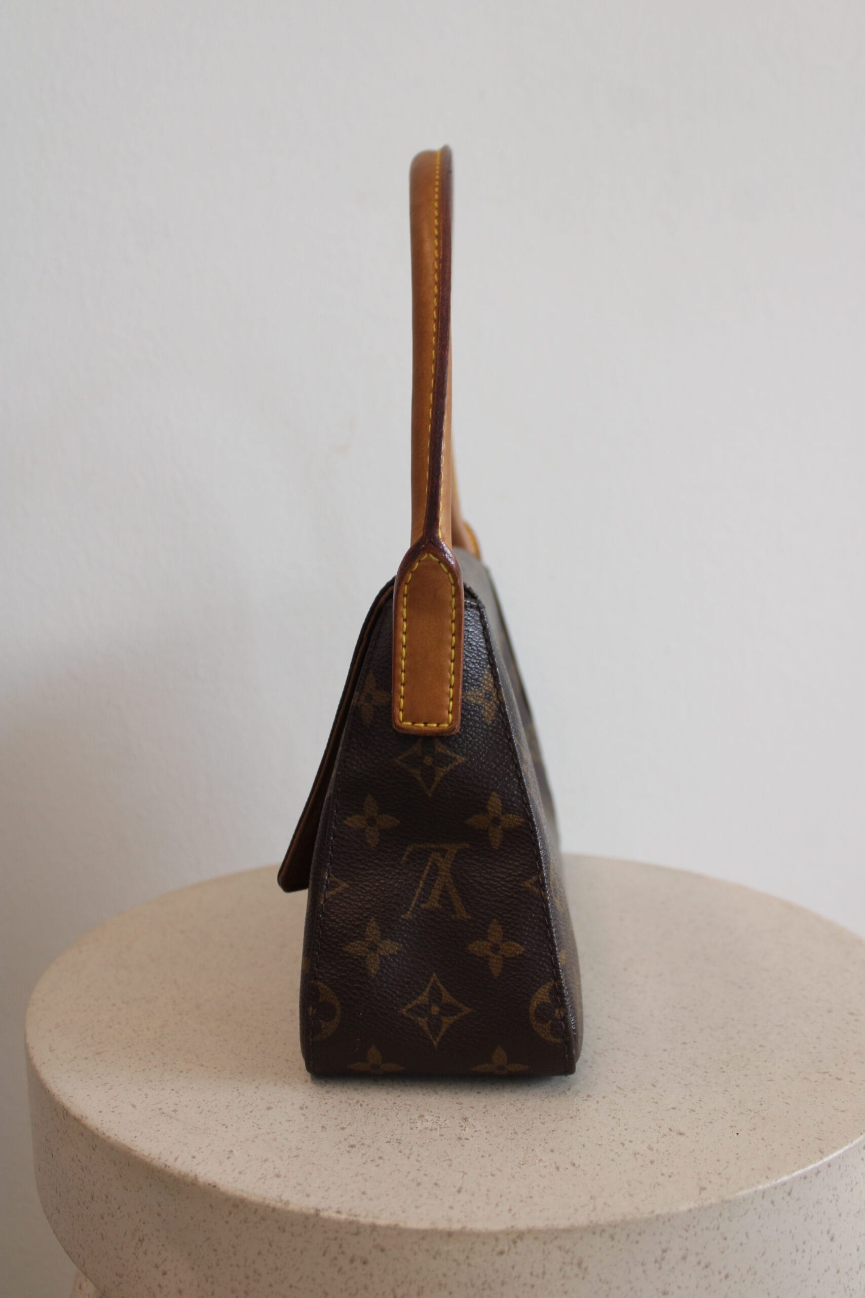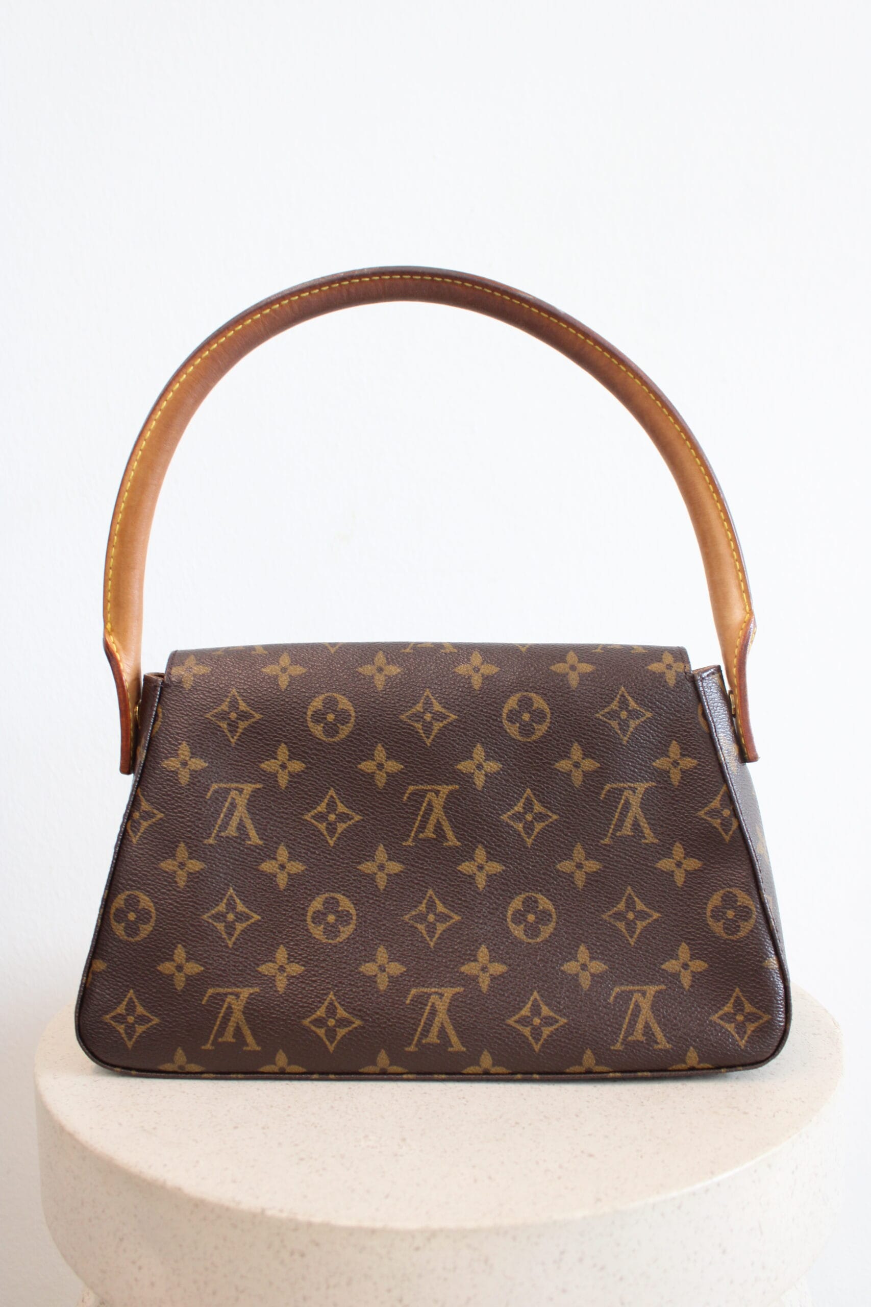 The Looping PM is a compact shoulder bag that features a unique curved shape. It is crafted from Louis Vuitton’s signature Monogram canvas. The bag is accented with natural cowhide leather trim, which adds a touch of luxury to its design. The Looping PM has a single shoulder strap that allows for easy and comfortable carrying.