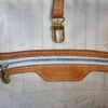 7.0/10 – The condition is vintage. Some signs on the leather parts, like top leather and handles. Canvas has one crack in it. Small corner signs and inside has some signs as well.