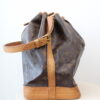 7.5/10 – Good vintage condition. Some small signs on the leather parts, like bottom, corners and top leather. Drawstring in good condition. Canvas have very small white faded signs. Inside looks good.