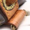 7/10 – Good condition. Some small signs on the leather parts, like bottom, corners. Drawstring has been replaced. Canvas and inside look good.