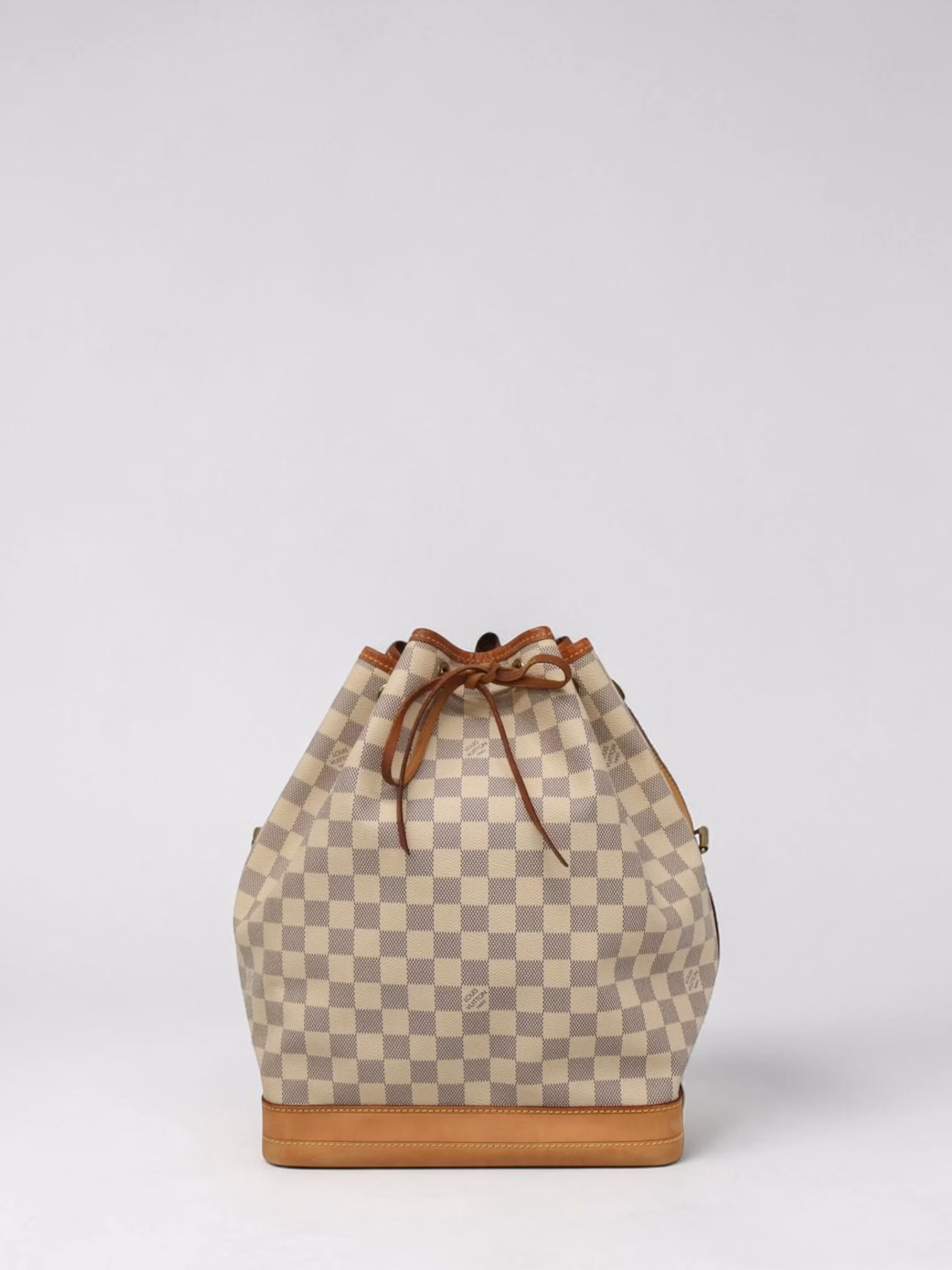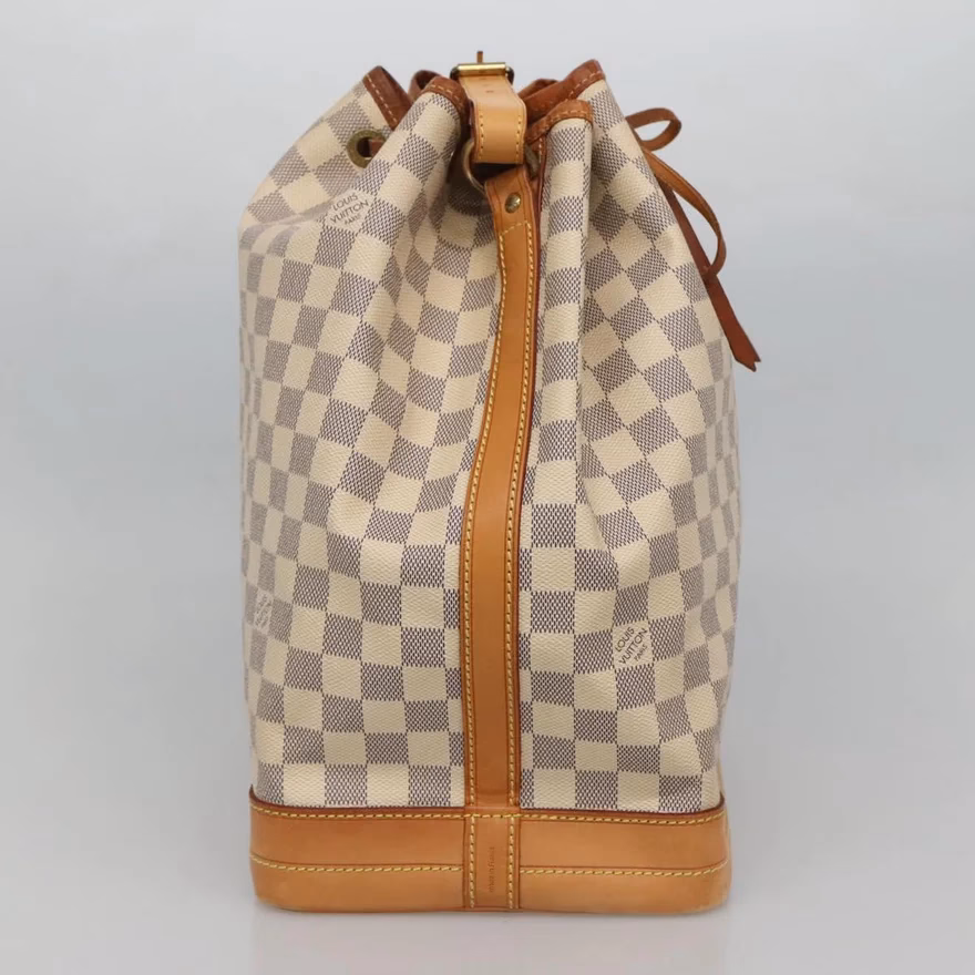 The Louis Vuitton Noé Damier Azur bag was originally designed to carry bottles of champagne, as its shape and size were perfect for holding bottles upright. Over the years, the Louis Vuitton Noé has become an iconic and highly sought-after handbag. It is known for its bucket-like shape, drawstring closure, and adjustable shoulder strap. The bag is crafted from Louis Vuitton’s signature Damier Azur canvas, which makes this beauty very unique.