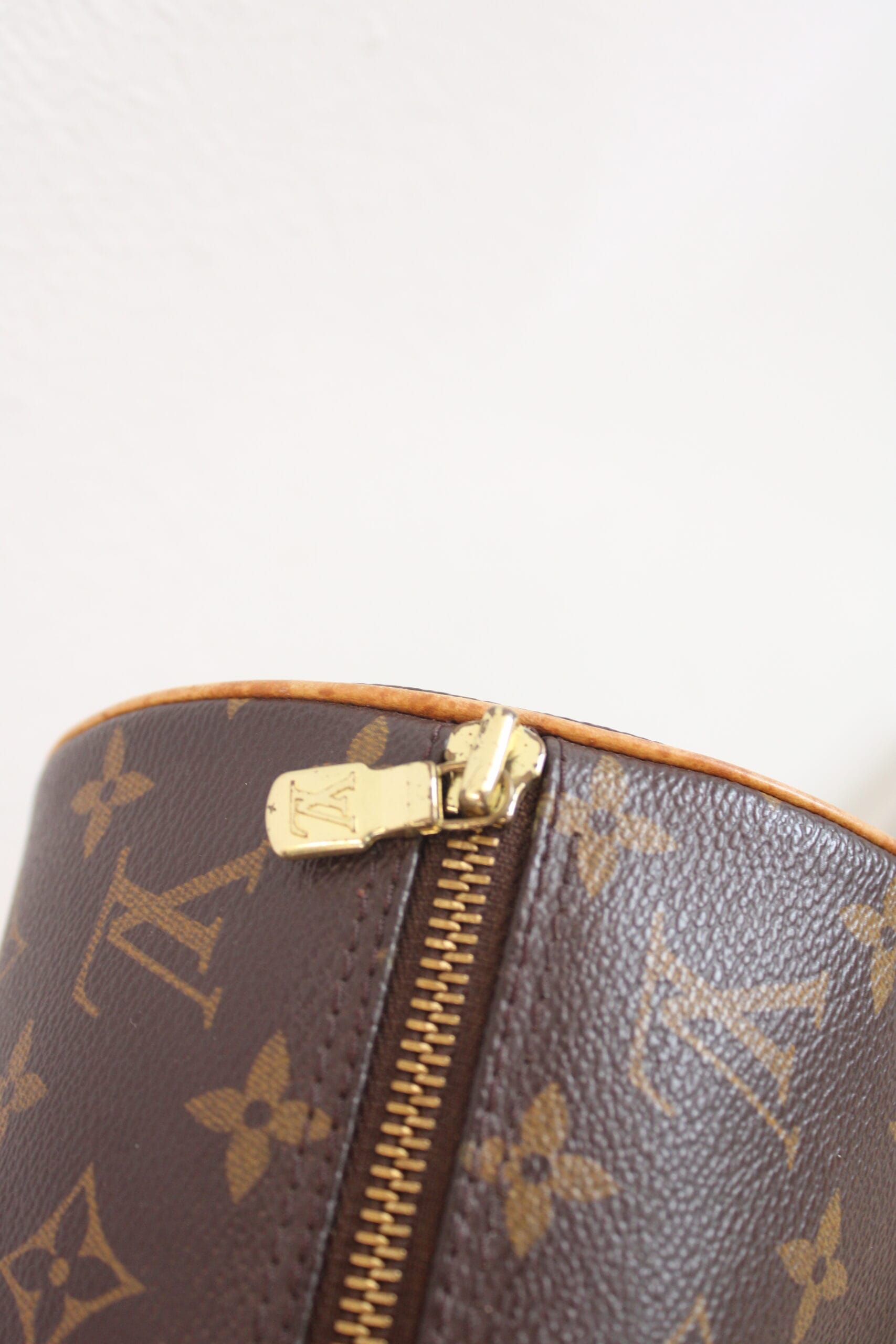 7.7/10 – The condition is good. Small discoloring signs on the leather parts, like the handles. Canvas and inside look good.