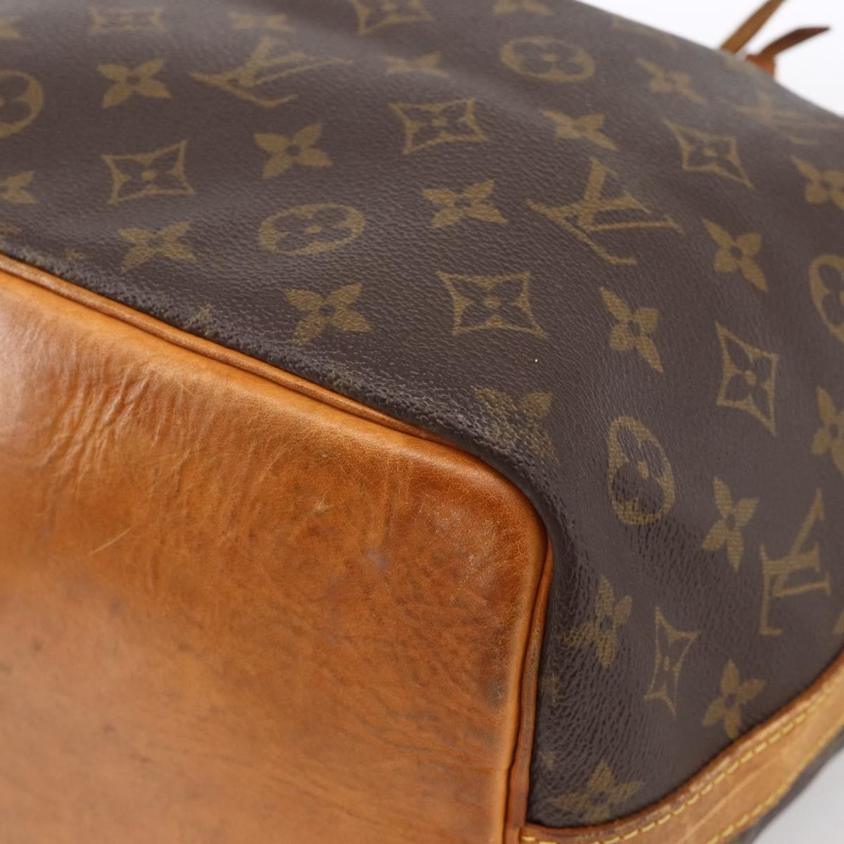 7.5/10 – The condition is good. Some signs on the leather parts, like bottom, sides and drawstring. Drawstring can break easily when in use. Canvas looks good. Inside is clean.