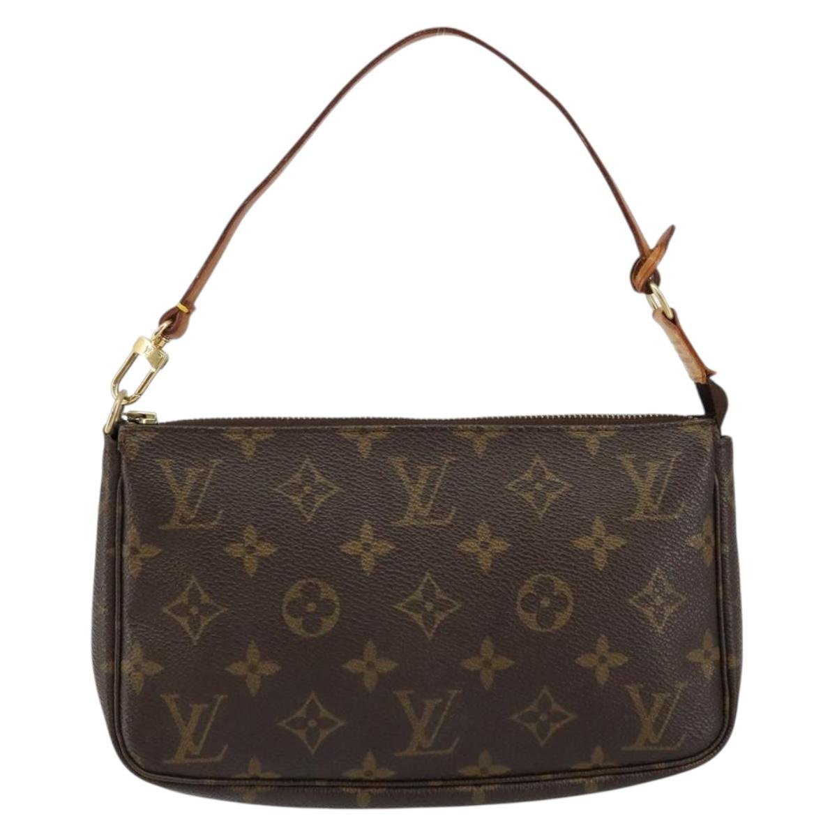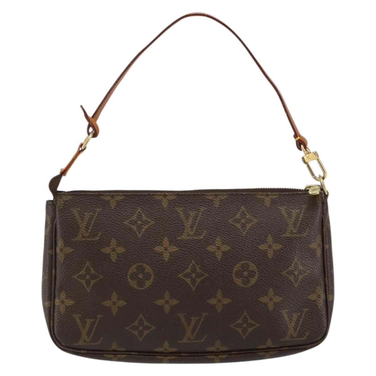 The Louis Vuitton Pochette Accessories is a popular small handbag/clutch that can be carried on the shoulder as well. The vintage Pochette is known for its compact size and versatile design, making it suitable for various occasions. It features the signature Louis Vuitton monogram canvas and has gold-toned hardware.
