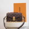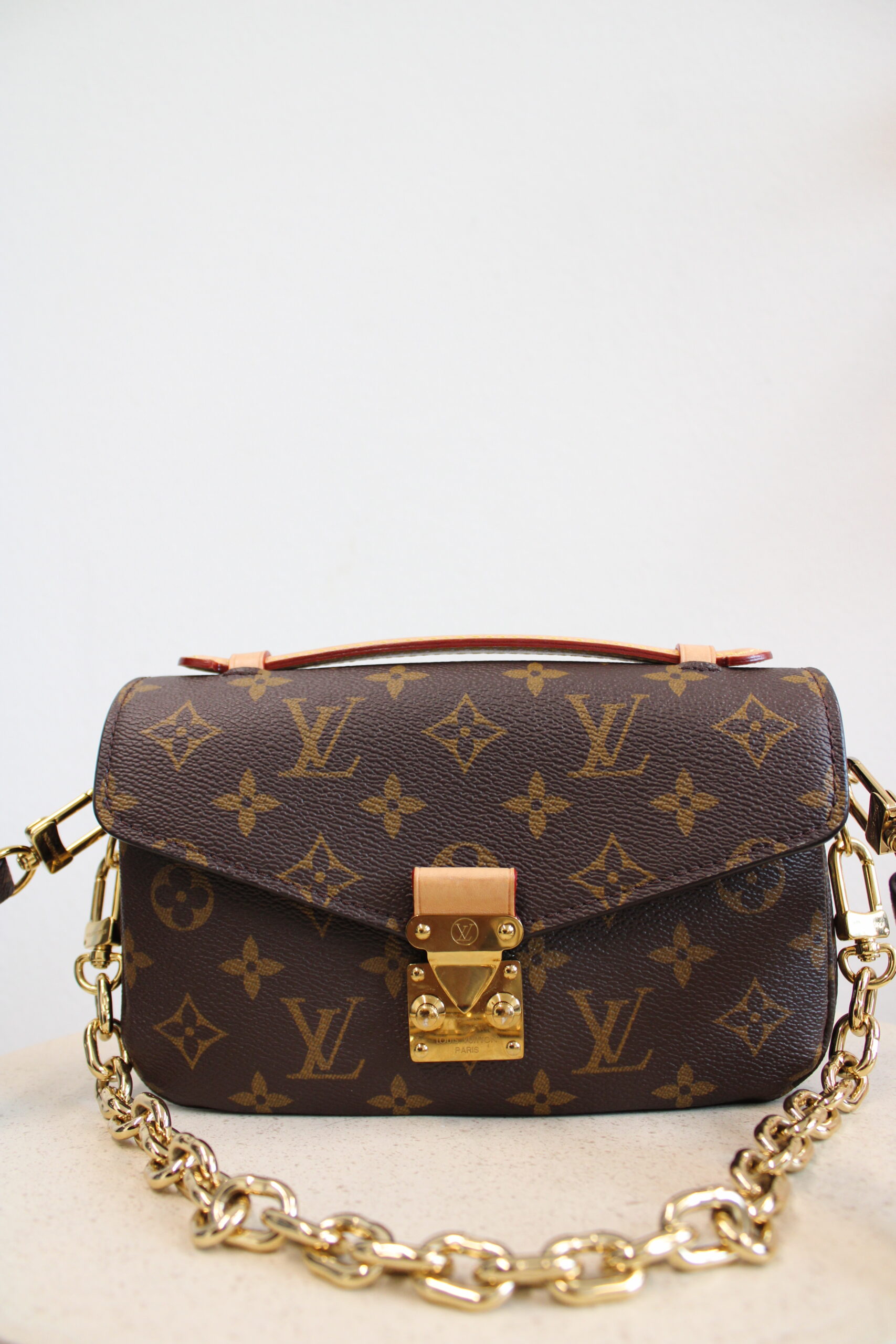 OMG, cutie alert! The Louis Vuitton Pochette Métis East West is a compact, structured shoulder bag. Made from Monogram canvas with natural cowhide leather trim and the S-lock signature, the Pochette Métis East West bag combines emblematic House cues with new contemporary details like a gold-colour chain for fashionable short-shoulder carry. It quickly became a popular style due to its practical size, versatile design, and timeless appeal. The bag has an adjustable and detachable leather shoulder strap and chain, allowing it to be carried as a shoulder bag, cross-body bag, or clutch.