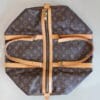 Want to travel in style? Then the Louis Vuitton Sac Souple is the perfect match for you! This is the LV Sac Souple 45. It comes with two top handles. The hardware of this LV travel bag is golden toned. It’s made from the Monogram Canvas with the Vachetta leather details and will fit all your belongings if you’re going on a holiday or a weekend trip.