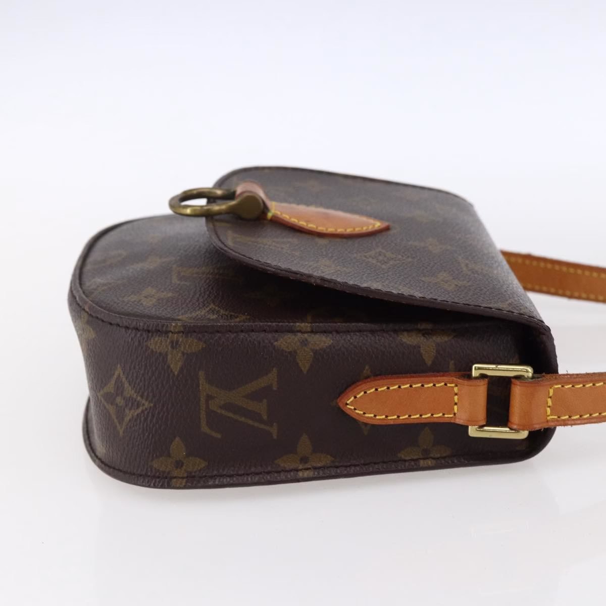 This Louis Vuitton Saint Cloud PM is a versatile small-size crossbody bag that features the iconic Louis Vuitton Monogram pattern on canvas, accented with Vachetta leather trim. The bag has an adjustable leather strap, allowing it to be worn on the shoulder or across the body. It also has a front flap with a gold-tone Louis Vuitton lock closure and a spacious interior with multiple compartments.