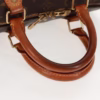 7.7/10 – The condition is good. Leather parts and hardware has some discoloring. Some signs in the canvas near the zipper (see pictures). Inside looks good, canvas as well.