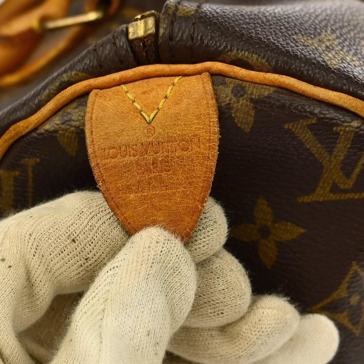 The Louis Vuitton Speedy is one of the most iconic and recognizable handbags produced by Louis Vuitton. It was first introduced in the 1930s as a travel bag, but its popularity grew over the years and it became a fashion staple. This hand-held bag is size 30 and made of the brand’s signature Monogram canvas with natural cowhide leather handles and trimmings. It features a spacious interior with a side pocket. Shop this timeless beauty now! Date code: AA0025