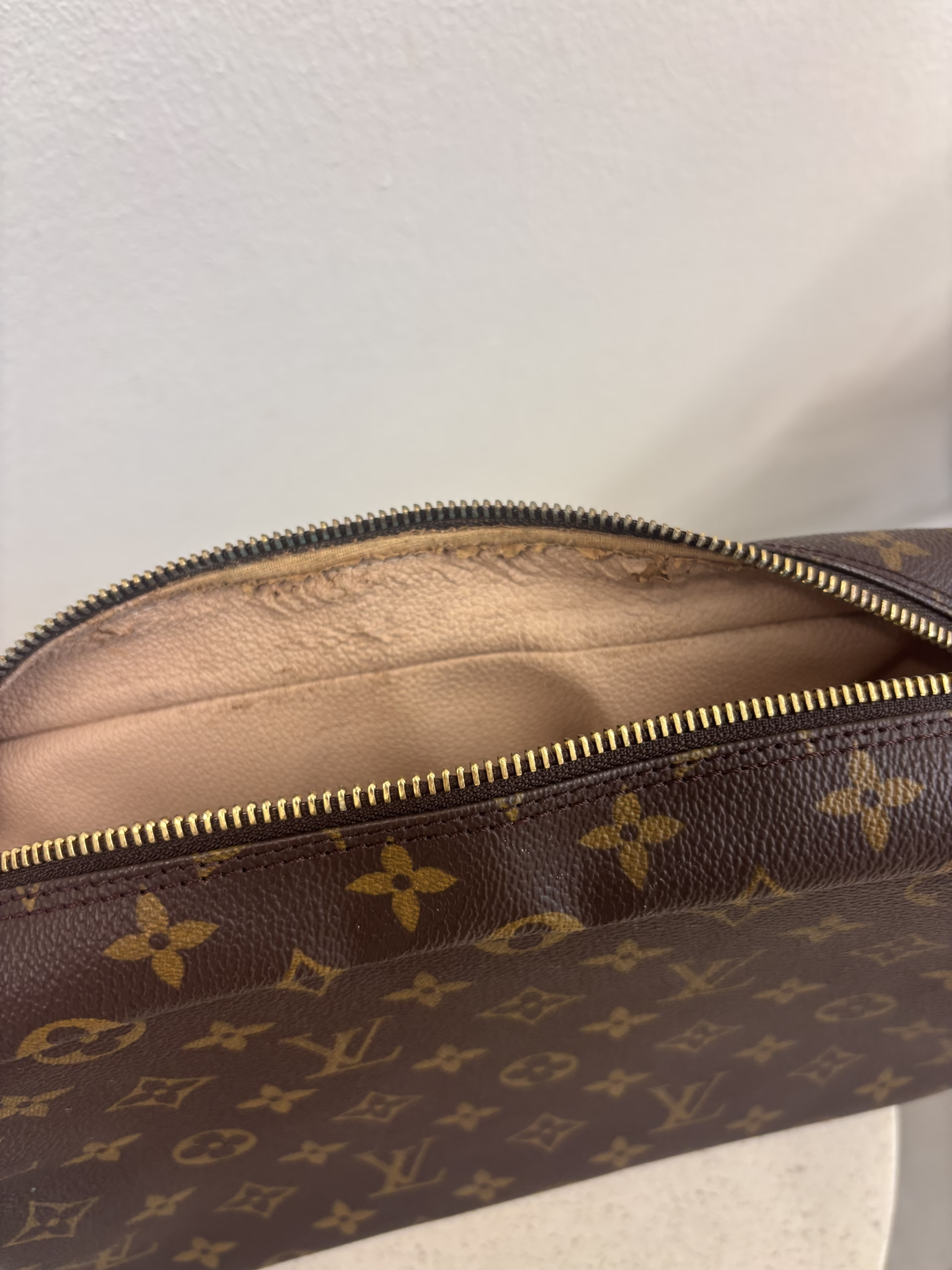The Louis Vuitton Toilette Pouch 28 is what you need every day! This vintage toiletry bag carries all your make-up essentials and can be carried as a clutch as well. The bag features the well-known Monogram canvas. The clutch closes with a zipper and inside the bag there is space for your daily belongings or make-up essentials. There is a side pocket for smaller stuff.