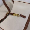 The stunning Yves Saint Laurent Hobo 5 a 7 Canvas Bag with golden colored hardware is what you need! This IT-girl bag features beige linnen look canvas and brown leather details. The bag has an adjustable strap to fit perfectly around your shoulder and closes with the metal Cassandre YSL hook. The most classy shoulder bag for a day or night out!
